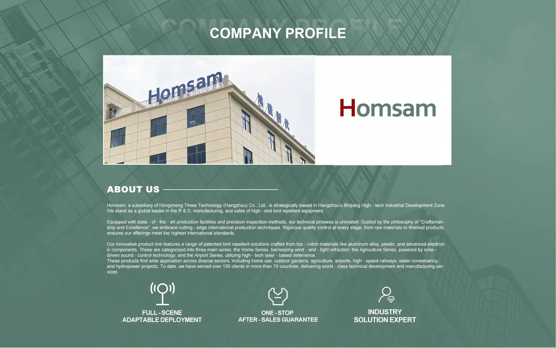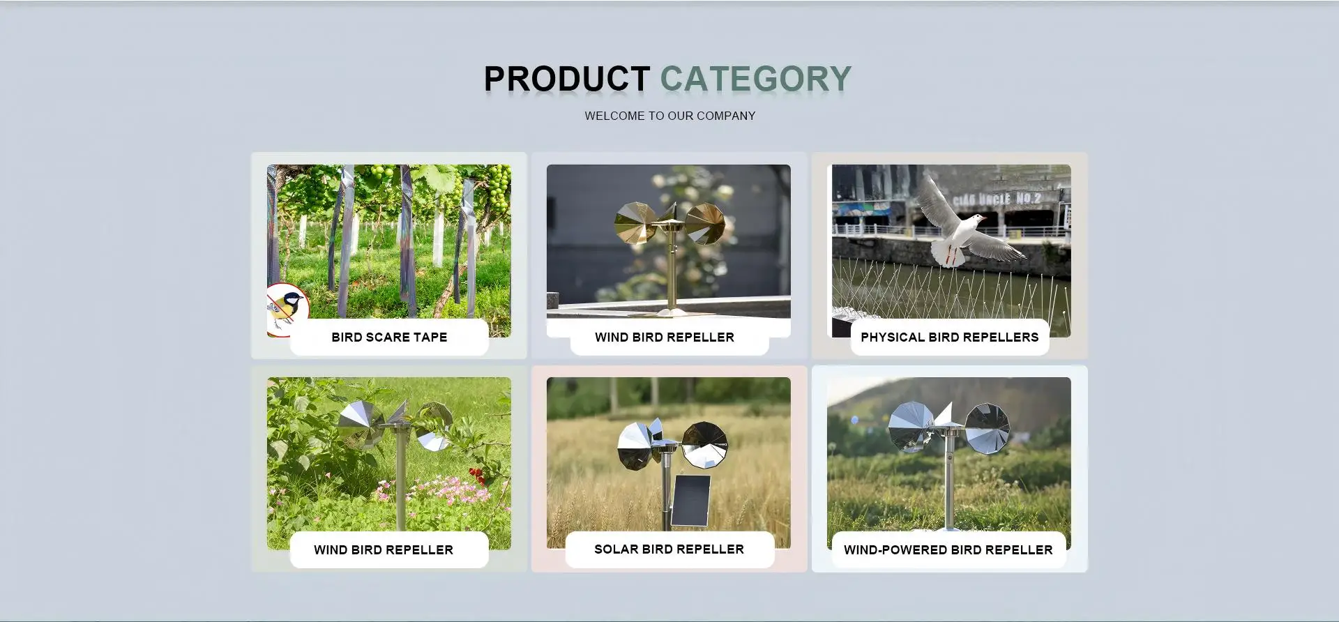 主な製品:風鳥忌避剤、ソーラーバードリペラー、超音波鳥忌避剤、レーザーバードリペラー、鳥抑止力